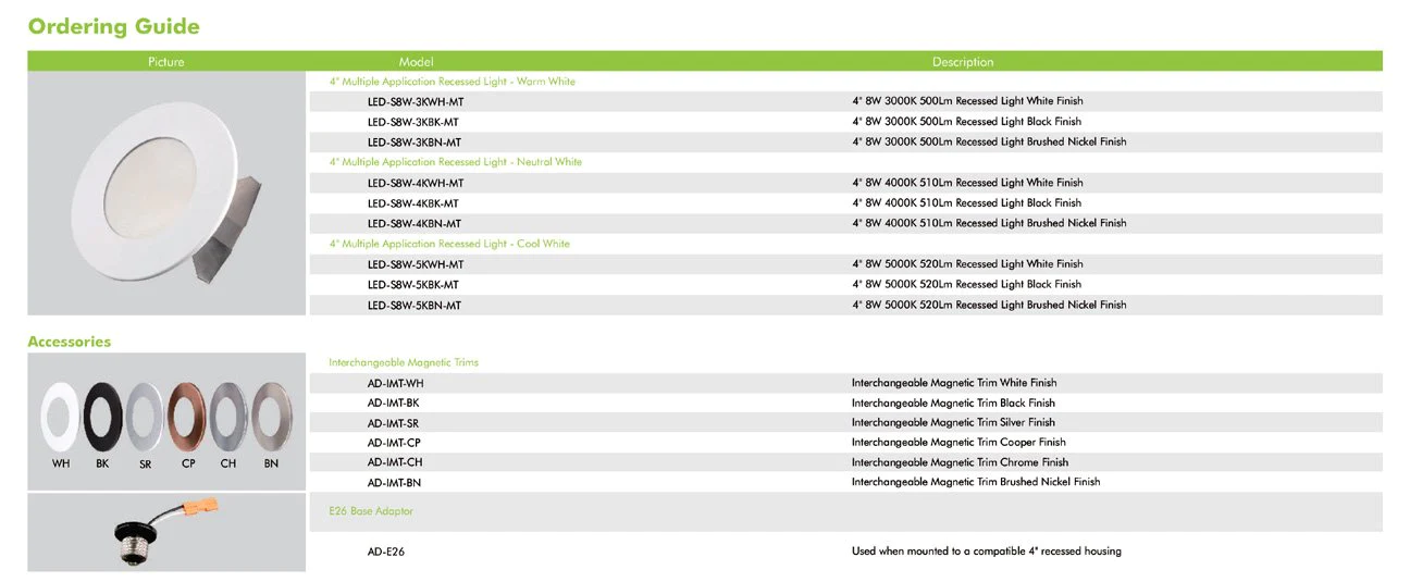 Multi-applications, Multi-colors, can be mounted to a compatible 4″ recessed housing or attached to a standard 4″ octagon junction box Ideal for residential, office, retail, hospitality, soffits, drop ceilings, attics, hallways, bathrooms, kitchens, basements, entryways, elevators, apartments, etc.